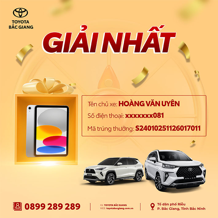 Kết quả quay thưởng “THÁNG VÀNG DỊCH VỤ - VẠN LỜI TRI ÂN” tại Toyota Bắc Giang